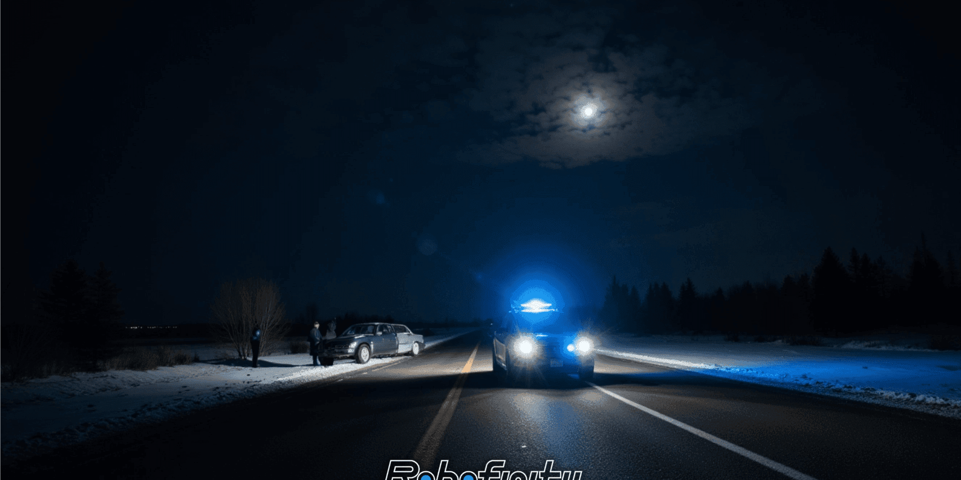 An RCMP unit was responding to a 911 call about a disabled vehicle. The sky was black, a light snow was falling, and the wind was picking up. Visibility was already poor — and getting worse.